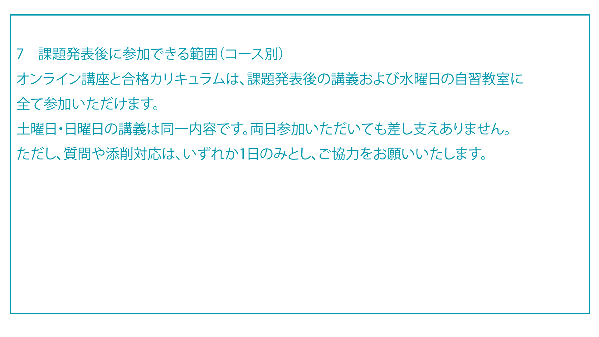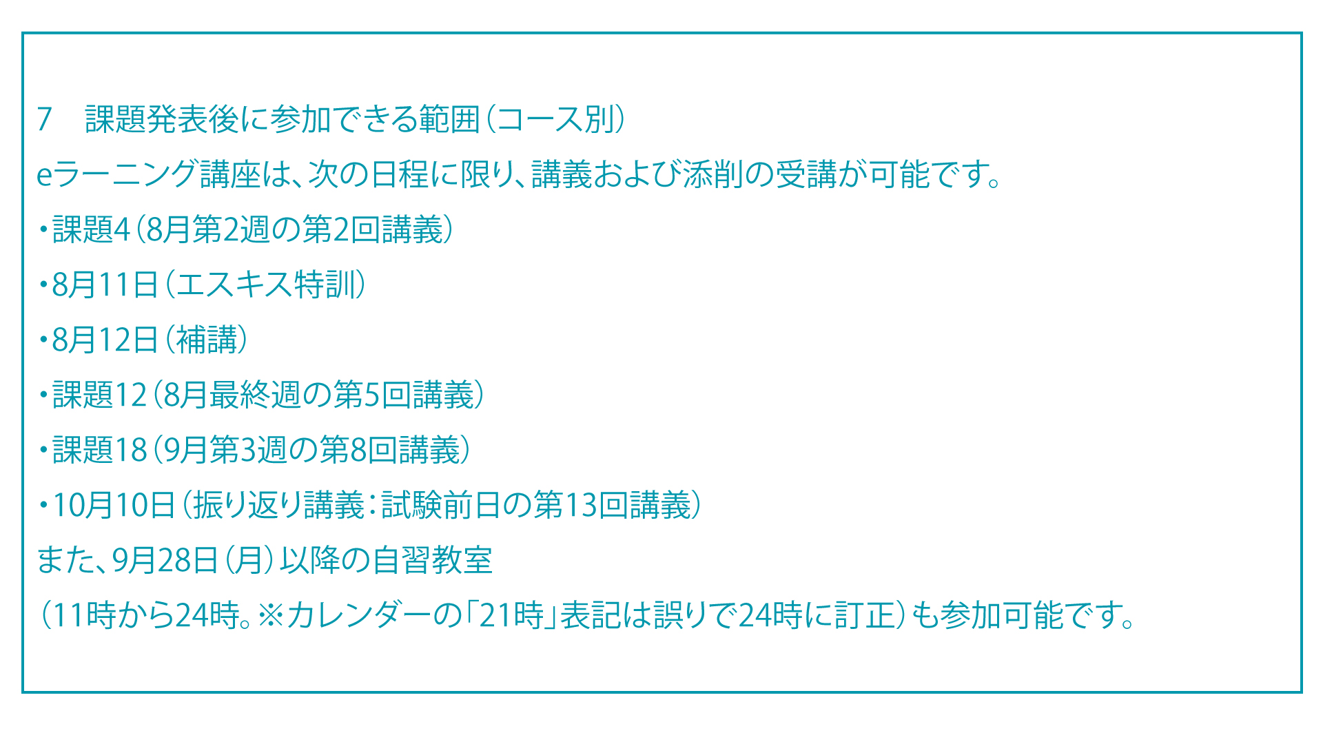↑講義や自習教室(自由参加)のスケジュールは上記スライドショーが最新版となります。