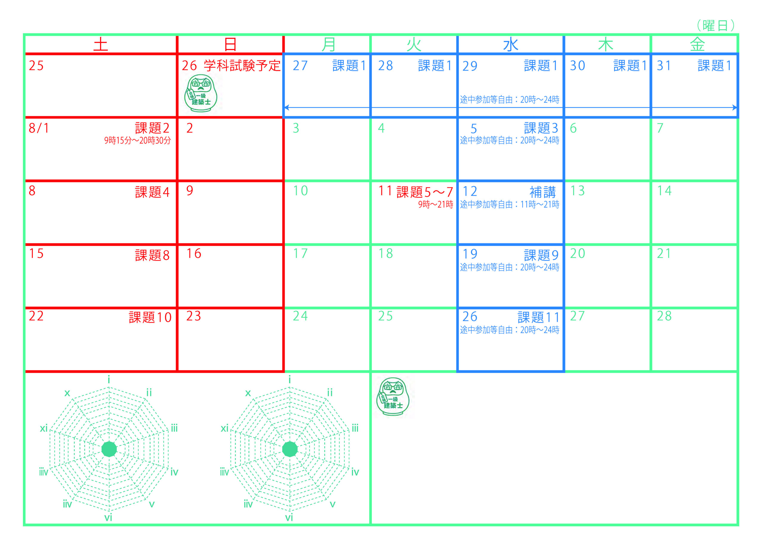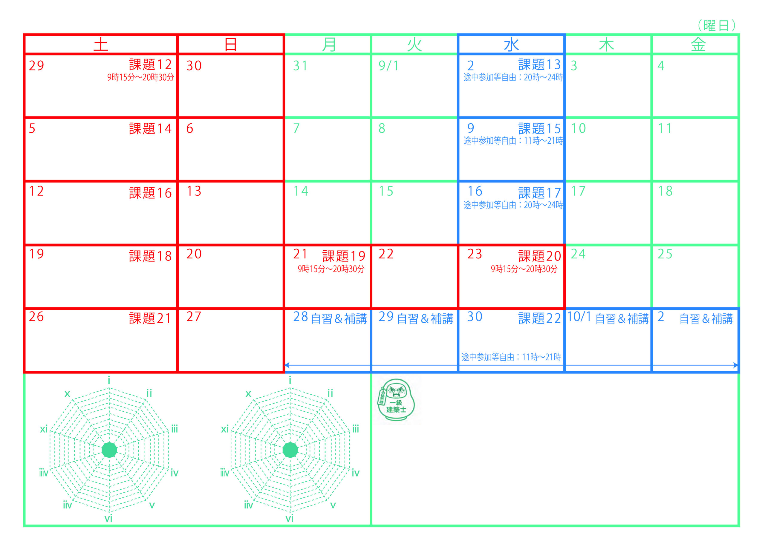 一級建築士製図試験オンライン講座(短期)/合格カリキュラム(フルパック)定員:最小15~最大26名※通常講義の参加定員15名※